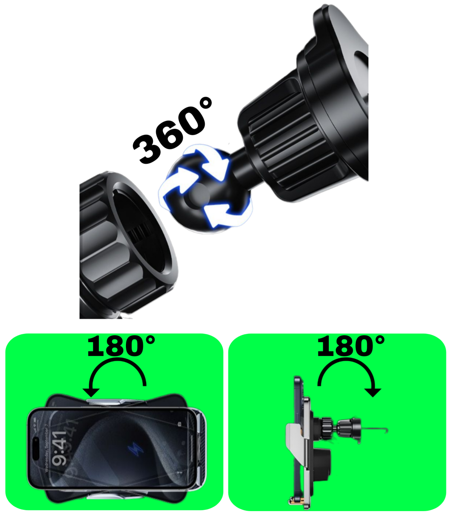 Obracaj uchwyt tak aby zawsze mieć idealny widok na ekran – bezpiecznie i wygodnie w każdej trasie.